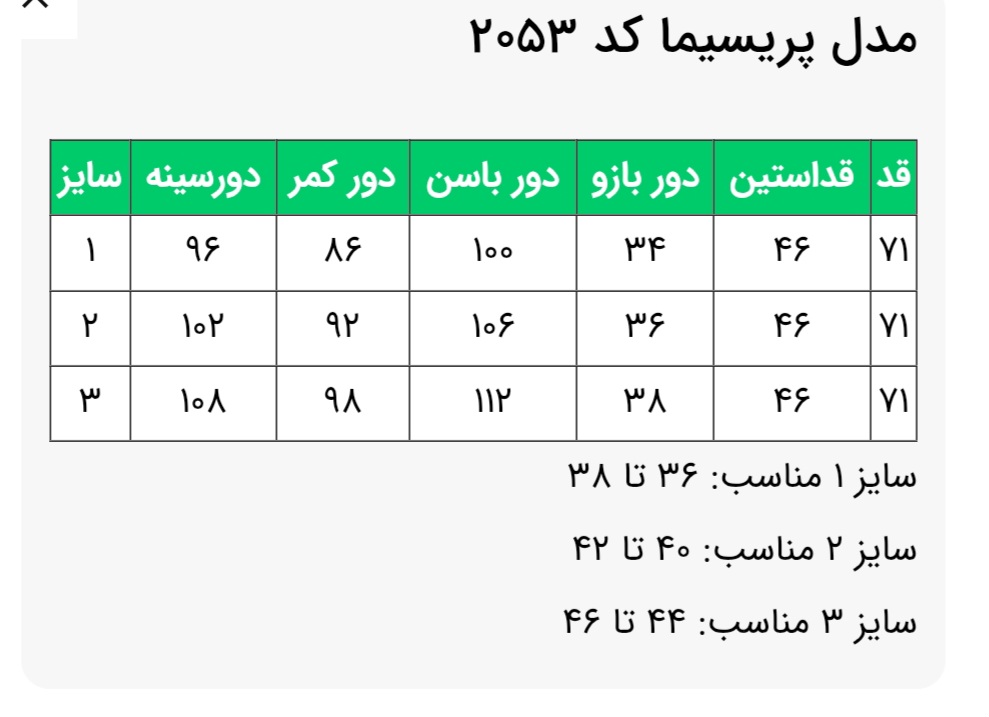 کت مدل پریسیما سایزبندی از ۳۶ تا ۴۶